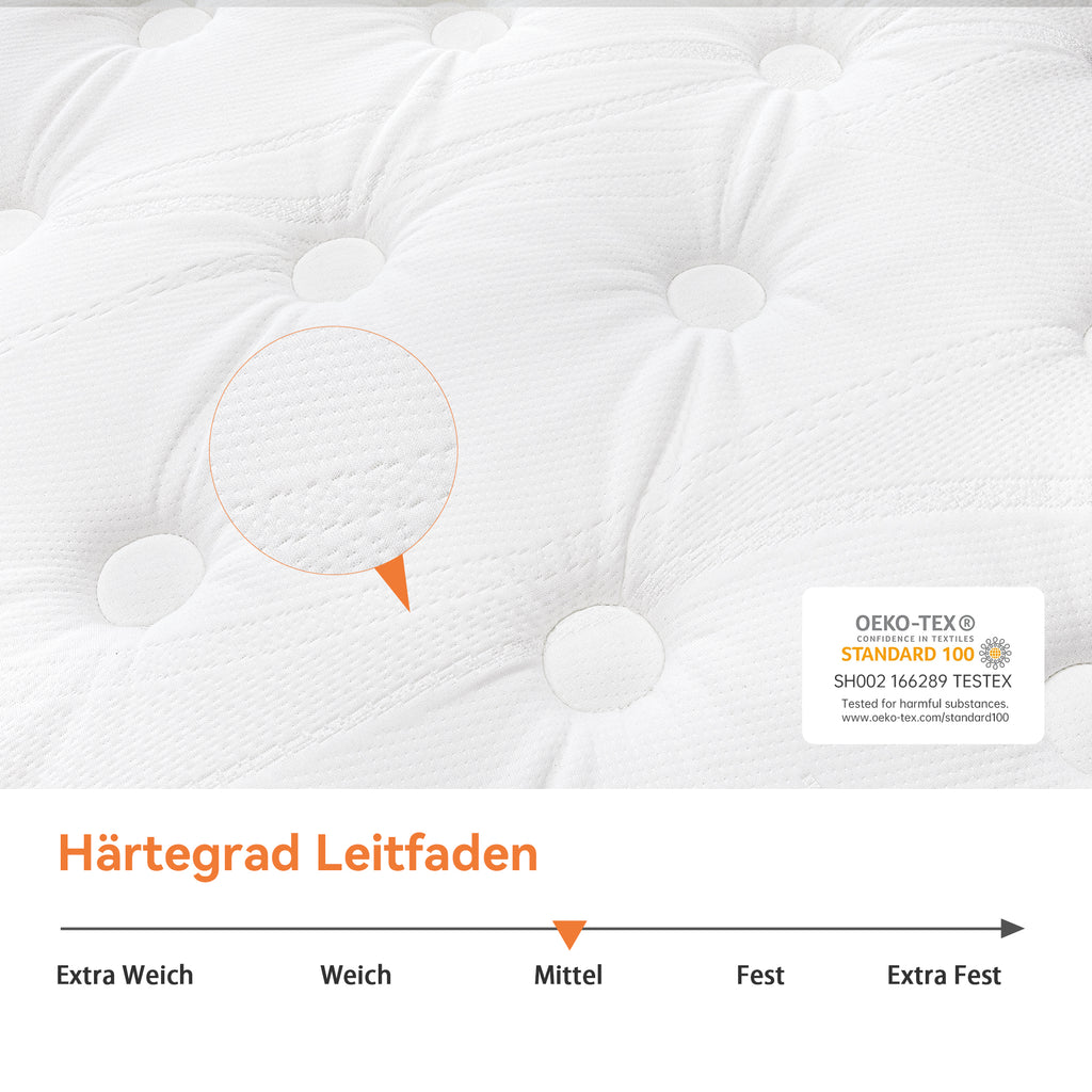đ€ăKeine Störung & Hoher SchlafkomfortăHochwertige Taschenfedern reduzieren BewegungsĂŒbertragung und GerĂ€usche â keine nĂ€chtlichen Störungen mehr durch Drehbewegungen Ihres Partners. Doppelt verstĂ€rkte Randfedern sorgen fĂŒr zusĂ€tzliche StabilitĂ€t beim Ein- und Aussteigen. Egal ob RĂŒcken-, Seiten- oder BauchschlĂ€fer â diese ergonomische 7-Zonen Matratze bietet verlĂ€sslichen Komfort fĂŒr jede Schlafposition.